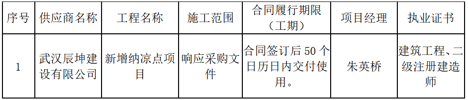新增纳凉点项目成交公告