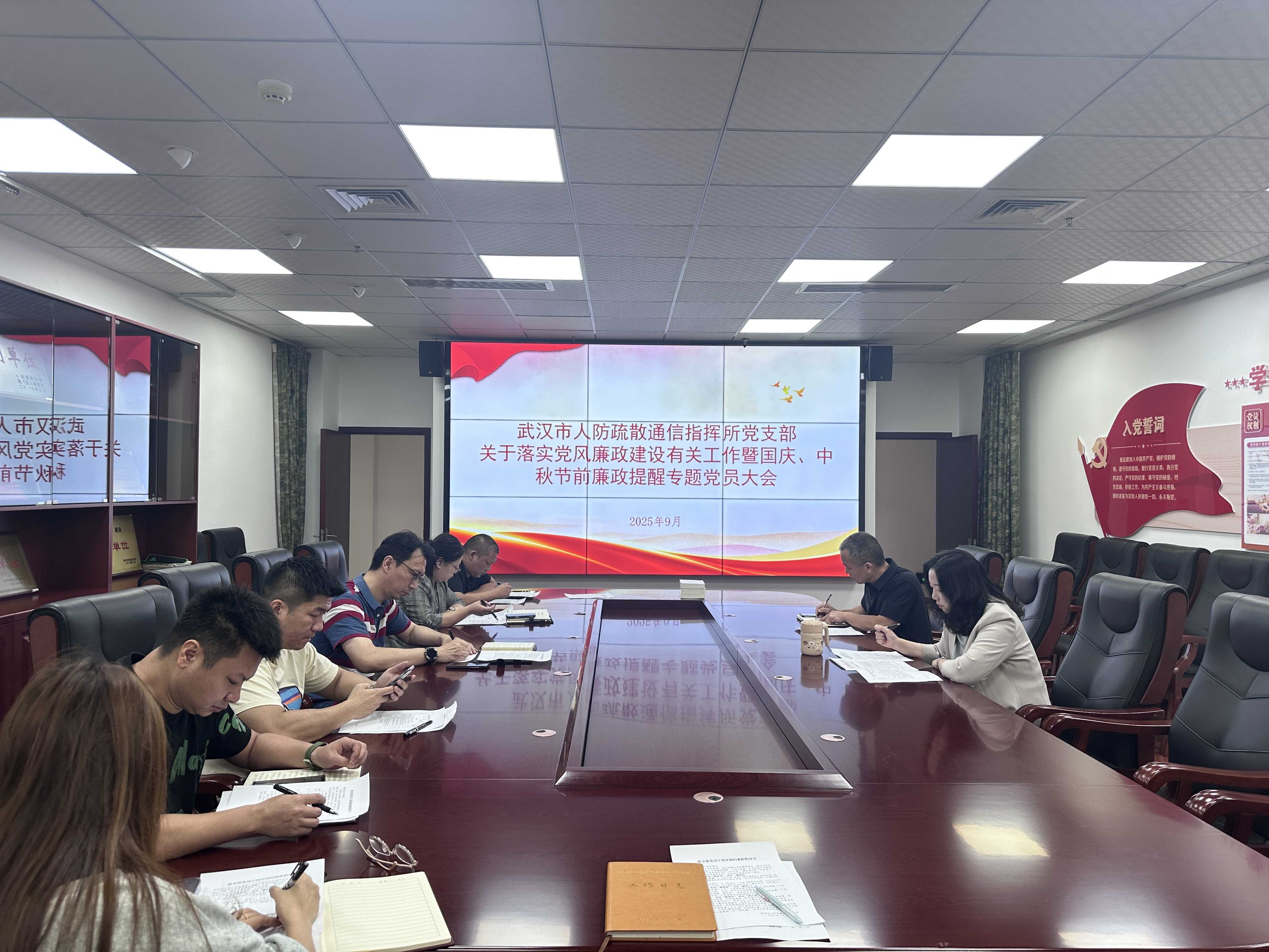 发布日期:2025-09-26 19:20 文章来源:武汉市国防动员办公室 【 打印 】 【 下载 】中秋、国庆双节将至,为拧紧党员干部廉洁“发条”,9月25日,市人防疏散通信指挥所召开专题大会,将党风廉政建设与节前安全工作一体部署。
