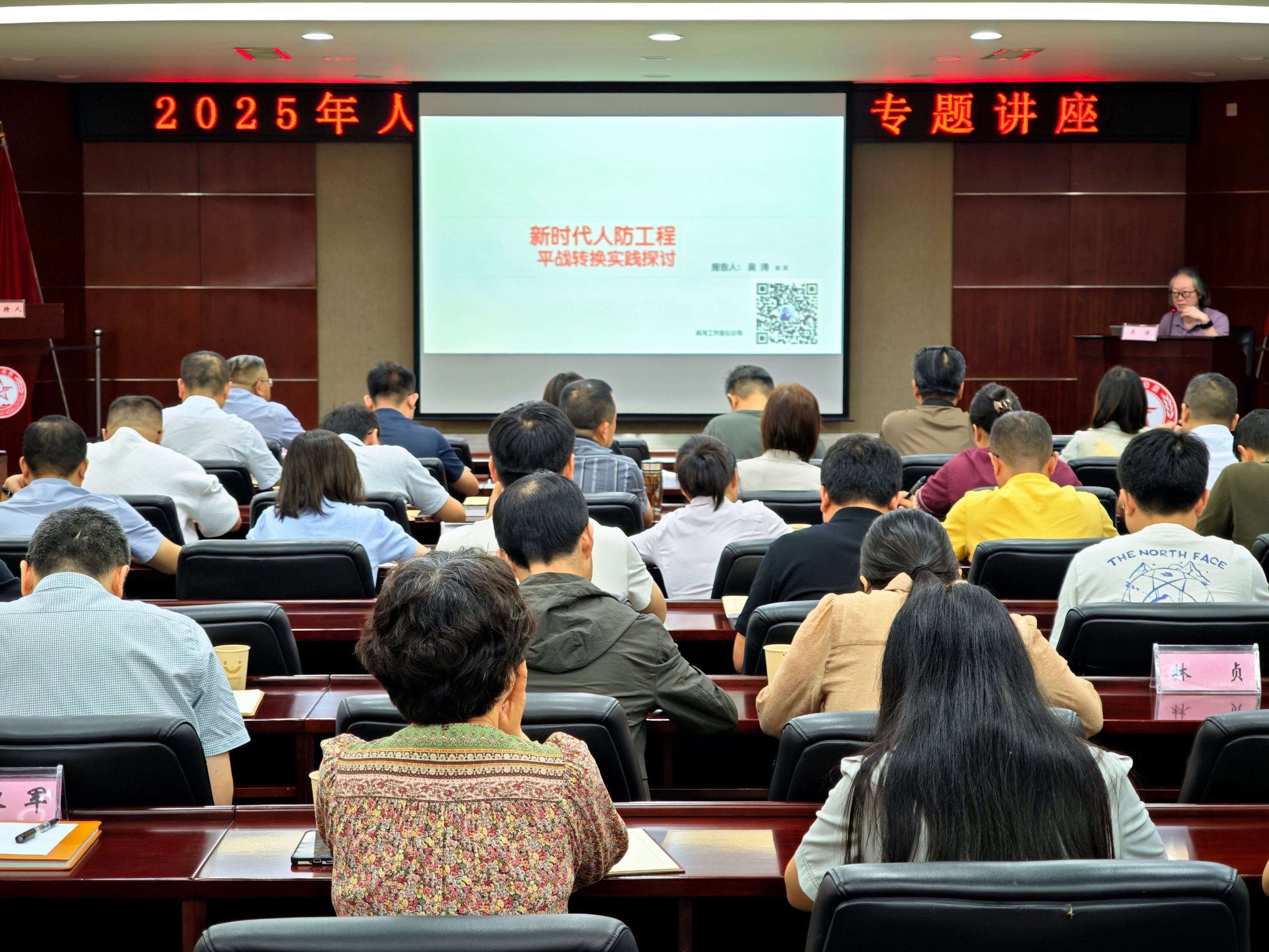 讲座邀请原解放军理工大学吴涛教授以“新时代人防工程平战转换实践探讨”为题进行现场授课,从国防动员背景下平战转换的概念、现状展开研究探讨,结合平战转换实战化演训案例,深入分析了新时代人防工程平战转换的实施路径,兼具理论高度和实践价值。