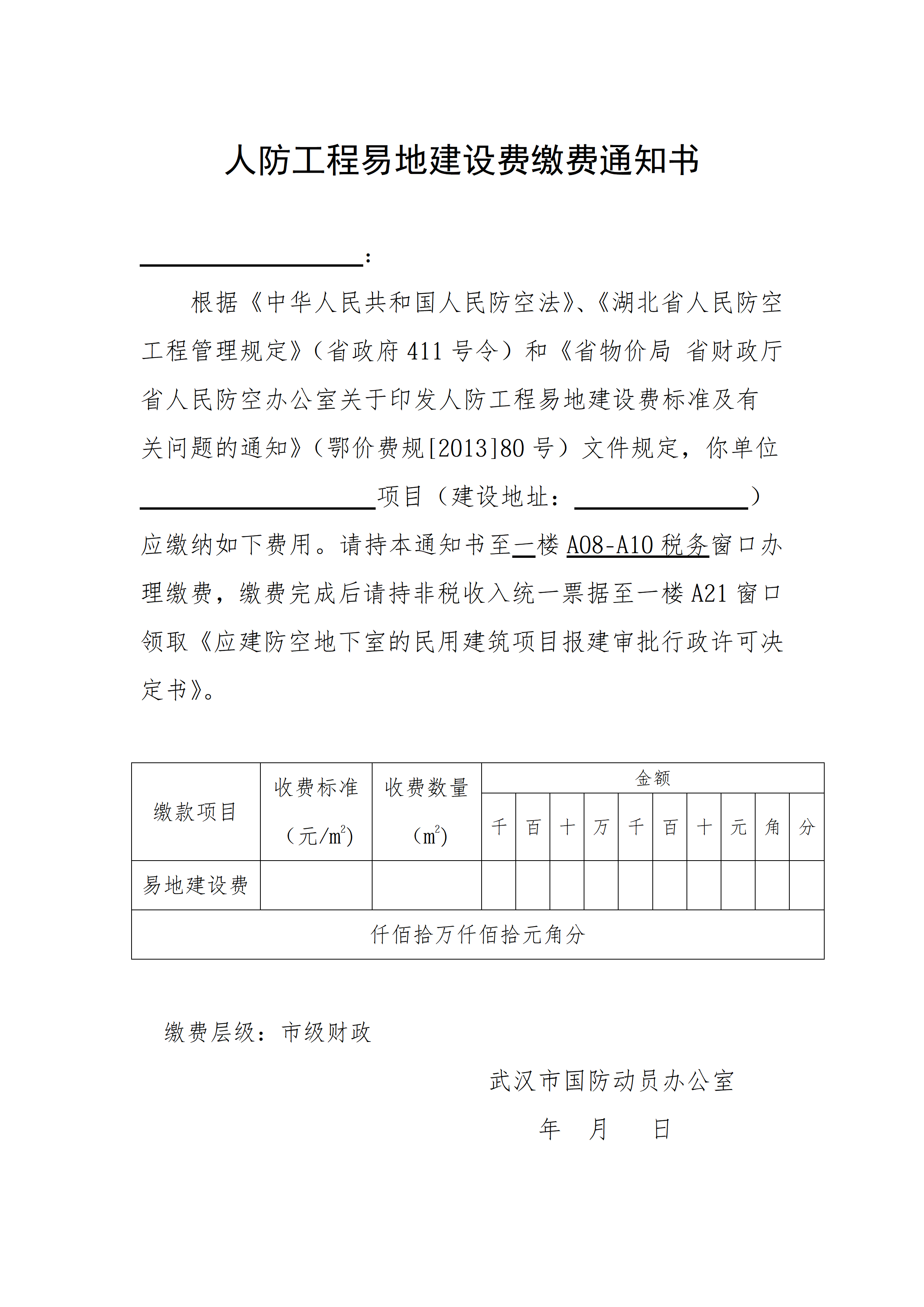 人防易地建设费缴费通知单